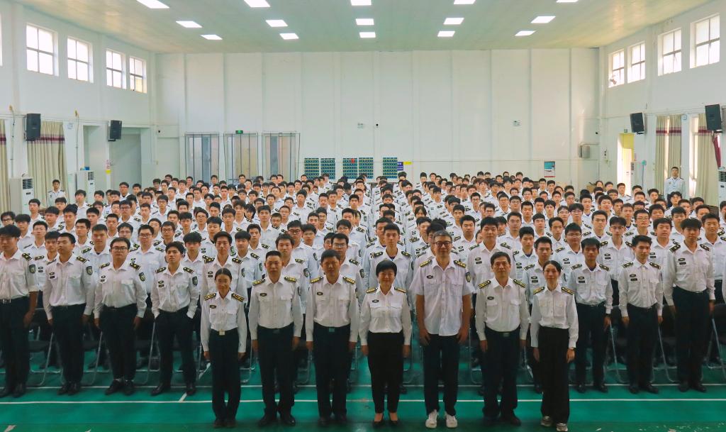 首先,齐昊宣布了新一届半军管学生干部名单,并为半军管学生干部和2025级学生代表佩戴了“一道杠”校衔。随后,邓朝晖总结讲话,强调了半军事化管理对航海类专业学生成长成才的重要意义,要求大家严格遵守学院半军事化管理的各项规章制度,刻苦训练,磨砺意志,并主动将个人理想融入国家发展大局,为实现海洋强国、交通强国的宏伟目标贡献青春力量。
