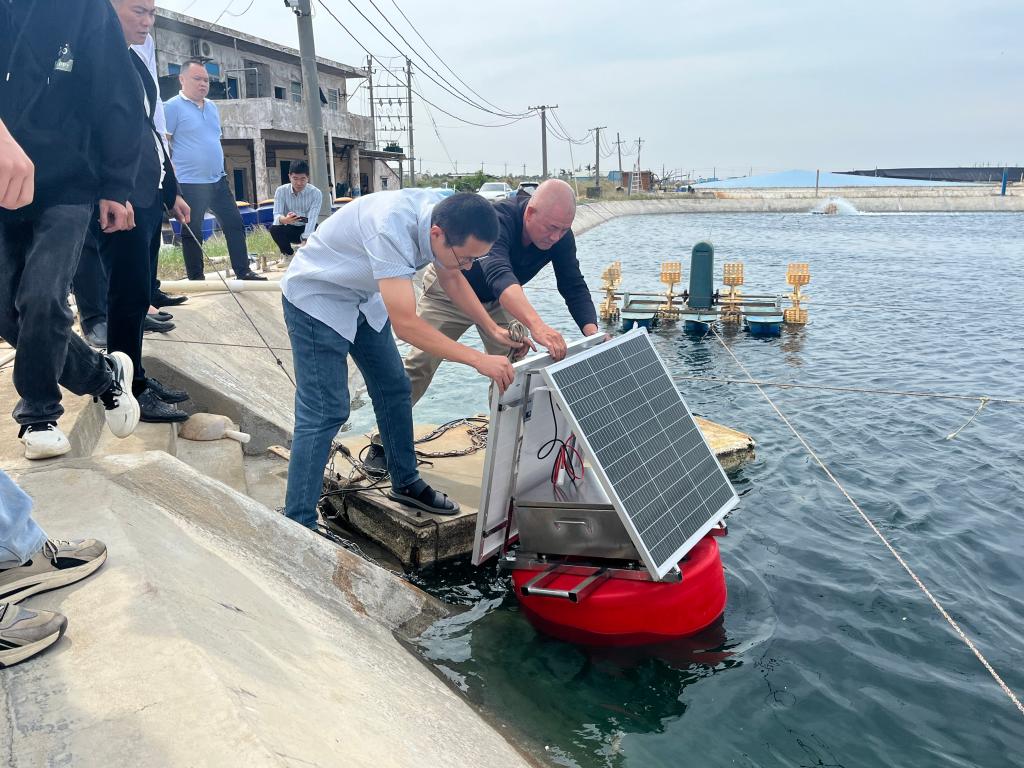 首先召开双方座谈会,陈秋强介绍了乐民镇的相关情况以及开展相关合作的意向,邓朝晖详细介绍了学校学院的基本情况,并探讨了党建共建的思路主题。随后,学校吕文刚副教授给当地养殖户进行了东风螺养殖技术的培训,陈庆龙汇报了智慧池塘技术的阶段性成果,详细介绍了水下机器人、自动化投料船、水质检测设备等相关研究进展。最后,相关设备在海山村港乐养殖场进行实地试用,帮助养殖户实时检测石斑鱼的养殖状况双方就设备的升级改造问题现场进行了深入探讨。
