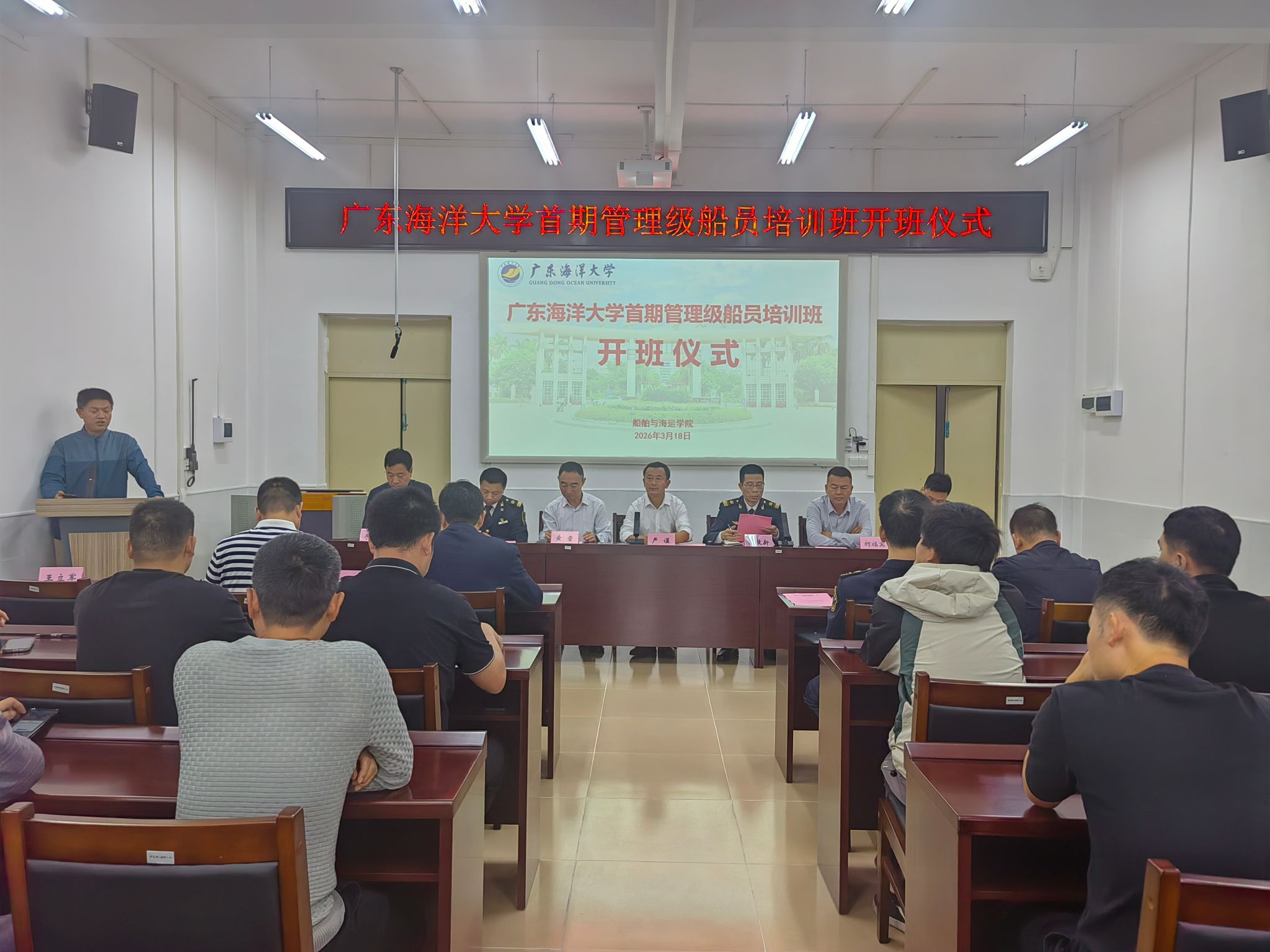 首期管理级船员(大副)培训班开班仪式在湛江海滨校区经海楼会议室隆重举行。此次培训班的开办,标志着粤西地区在管理级航海人才培养领域实现了历史性突破。湛江海事局船员考试中心主任陈牧新、船员管理处董国虎,湛江市交通运输局港航管理科科长柯福宾,瓜子tv